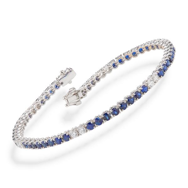 Tennis bracelet with vibrant sapphires and diamonds, a different approach to a classic line of bracelet.
