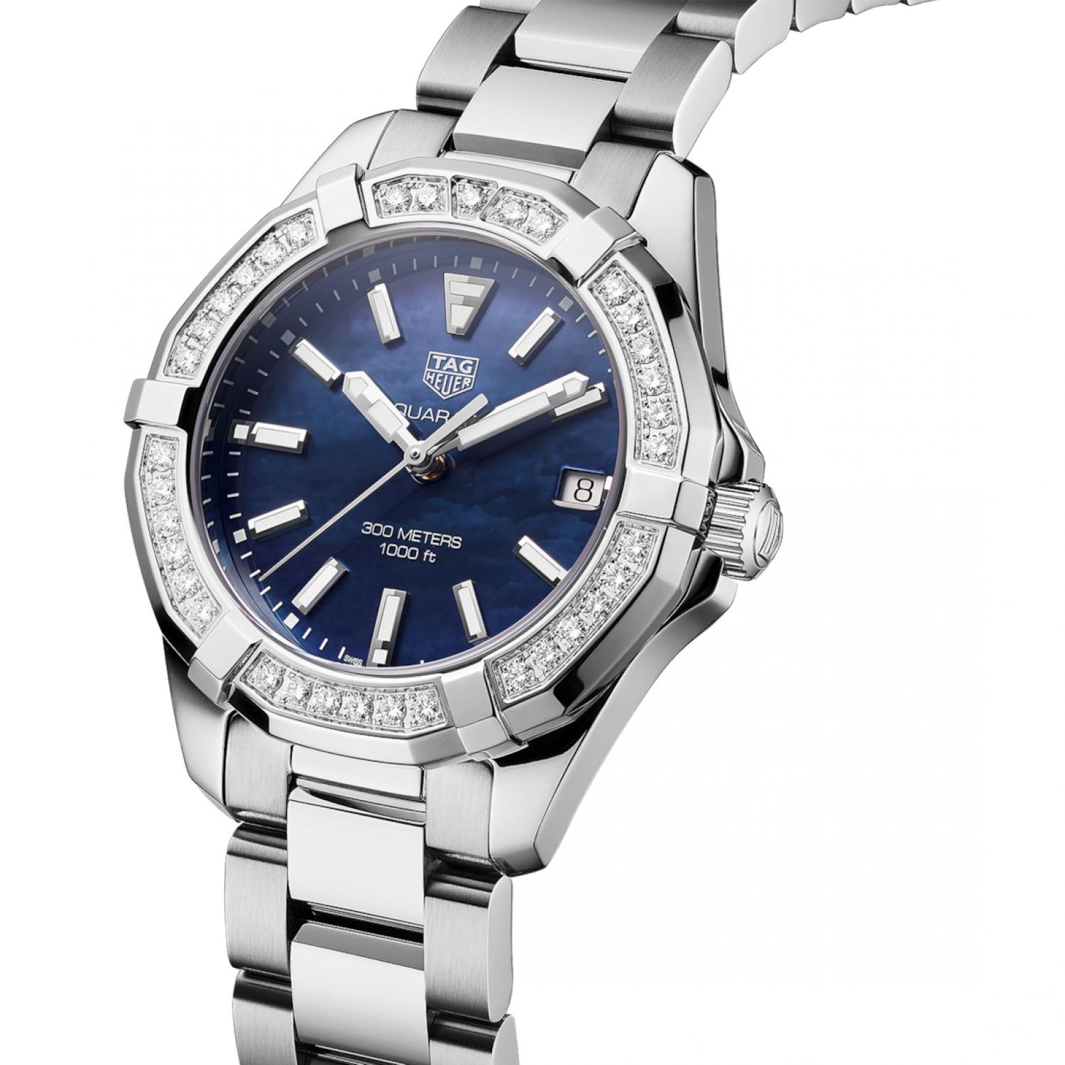 A very feminine timepiece designed for daily wear. The larger case size (35mm) reinforces its prestige and elegance, as does the stunning blue mother-of-pearl dial. For added luster and allure, 35 diamonds enhance the unidirectional bezel.