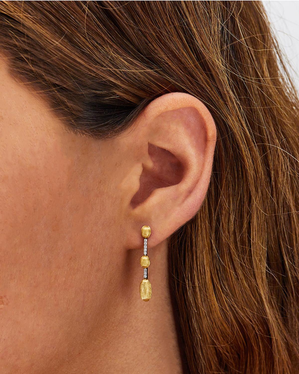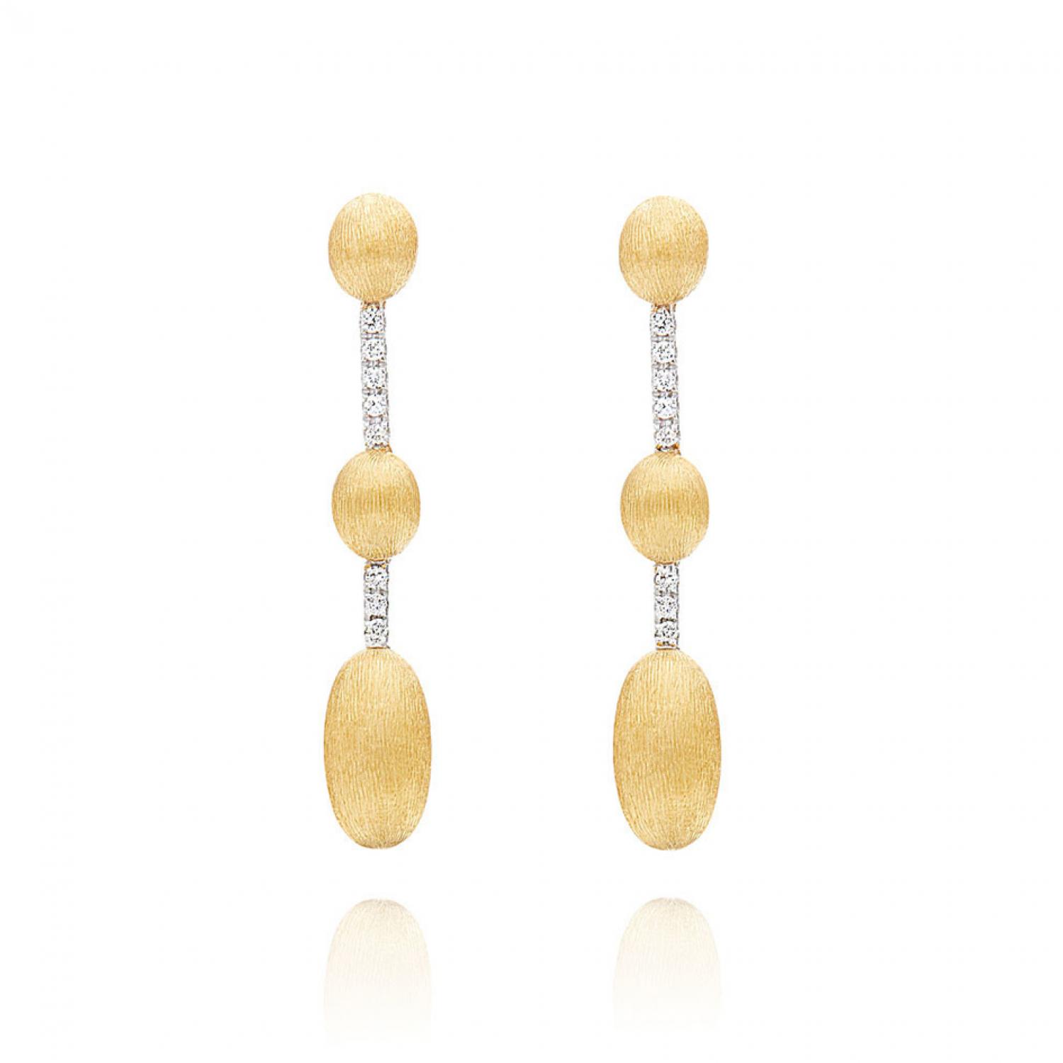 Elegant golden boules, hand-engraved with artisanal wisdom, chase each other along sparkling diamonds in these contemporary earrings.