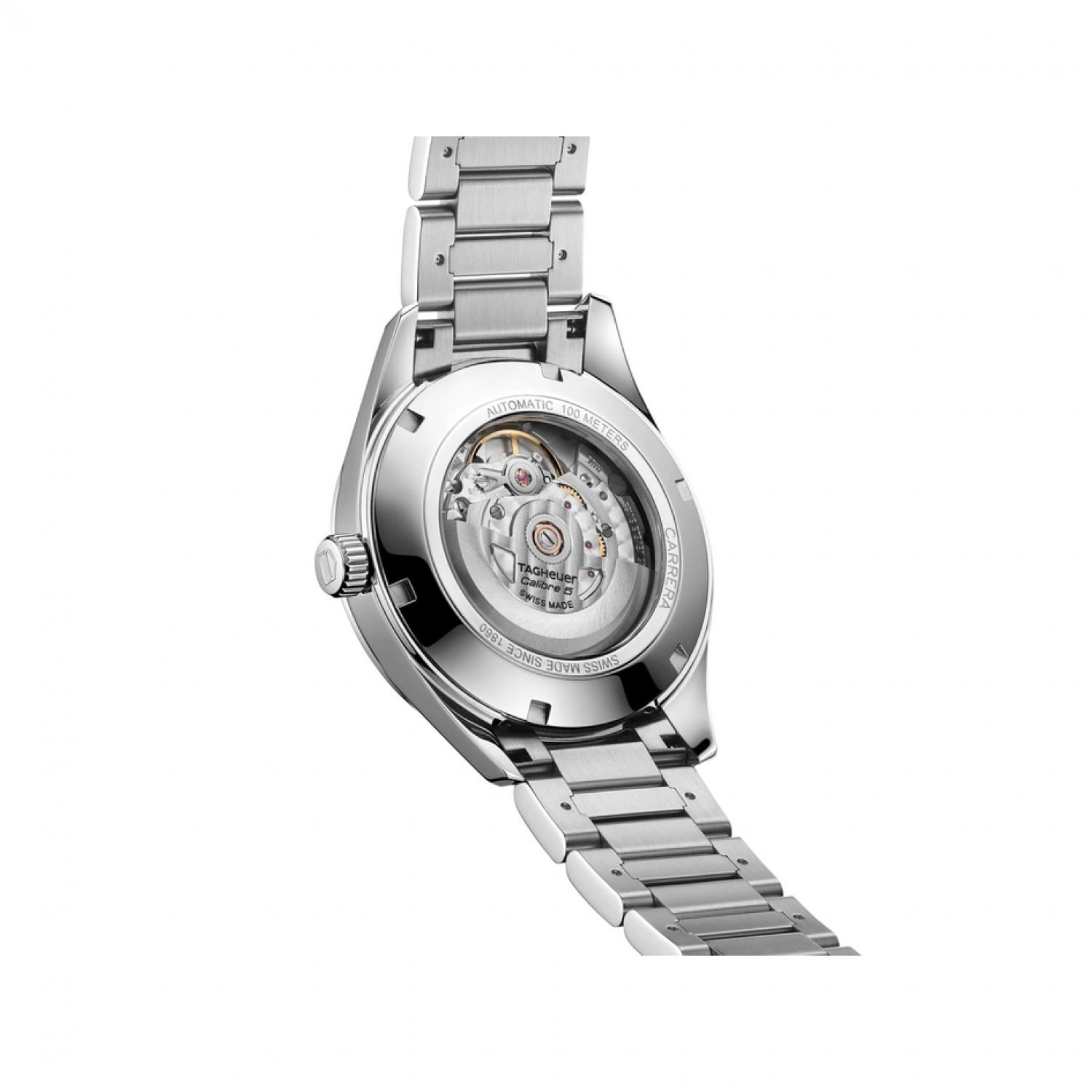 A timeless 39mm three-hand TAG Heuer Carrera complemented by a beautifully finished H-shaped steel bracelet. The black dial with an azurage effect completed with a date indication is stunning.