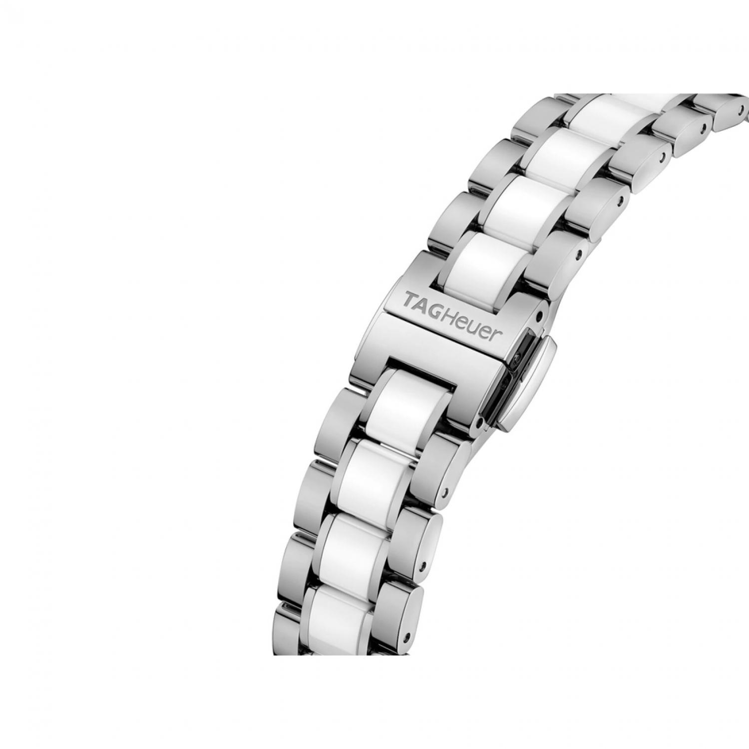 An haute-couture quartz watch for active, sporty women, with slim, 32mm polished steel case and diamond-indexed white dial. Silver-toned details add extra allure to the dazzling dial design.