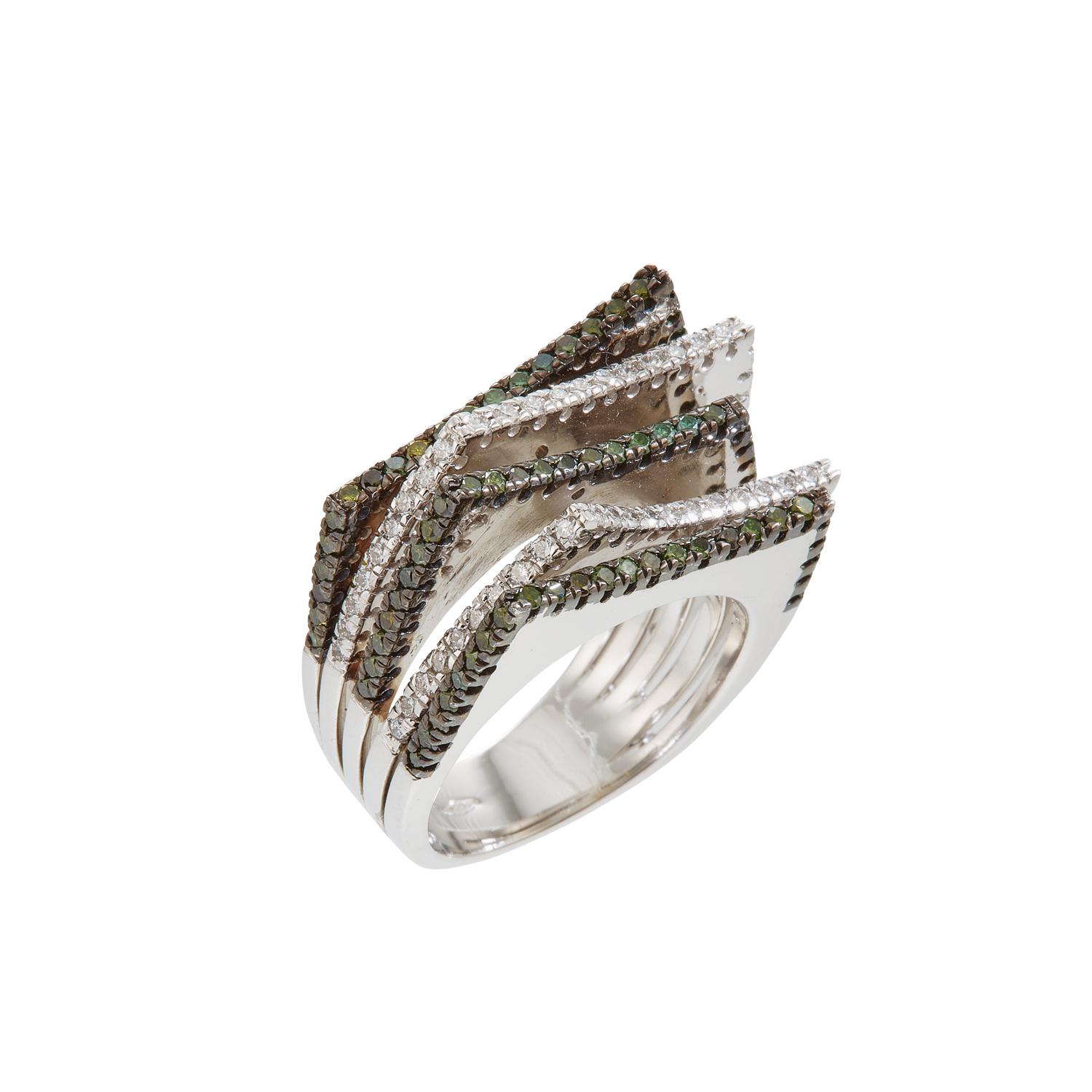 Ring in a harmonious geometry of mountain summits with green and white diamonds on black rodination.