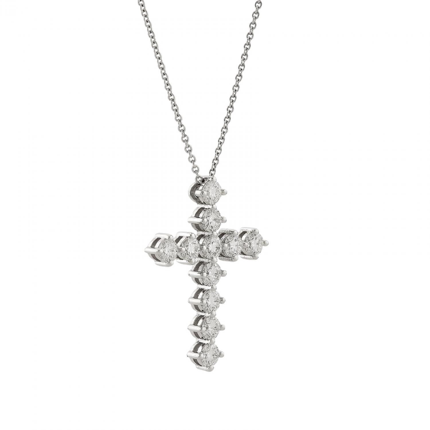 Cross necklace white gold 18K with brilliant cut diamonts total weight 0,99 carat G colour VVS2 clarity.