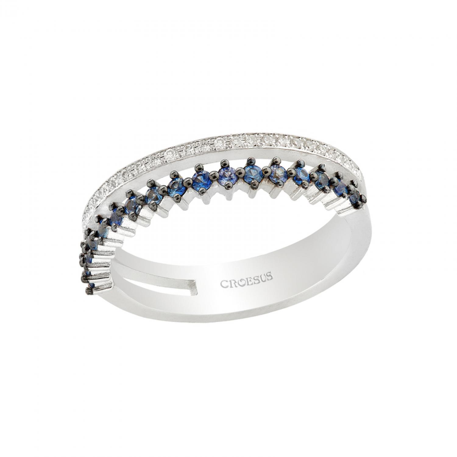 Ring 18K white gold with sapphires total weight 0,28ct and brilliant cut diamonds total weight 0,1ct