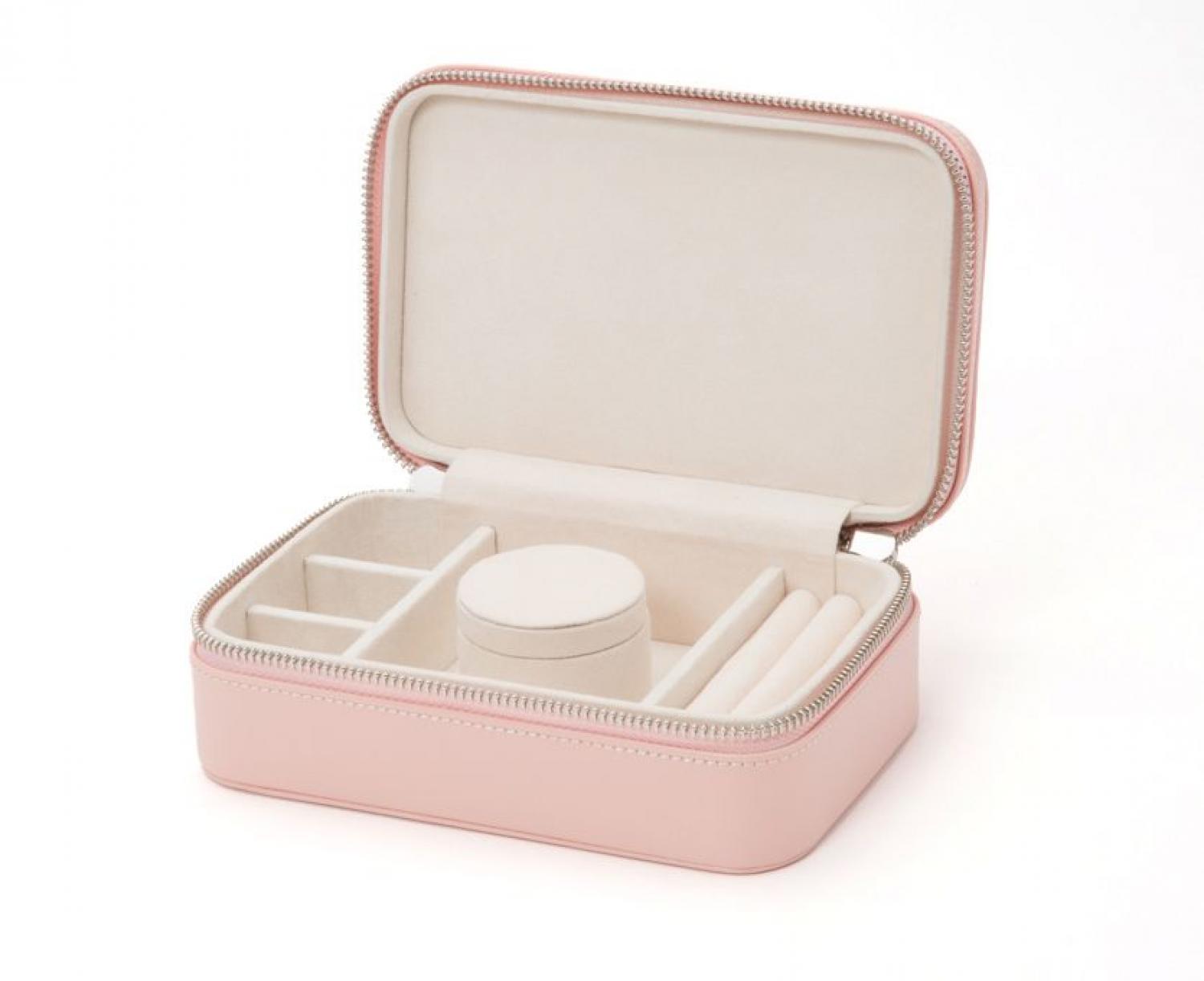 Where classic meets contemporary, function meets fashion, Sophia’s Travel Zip Case is designed to protect jewelry on-the-go. Available in sweet neutrals and rich colorways inspired by the natural world, Sophia pops on your dresser or in your travel bag. Wrapped in leather and lined with our patented LusterLoc™, this case is essential to elegantly protect and prevent jewelry from tarnishing for up to 35 years.
