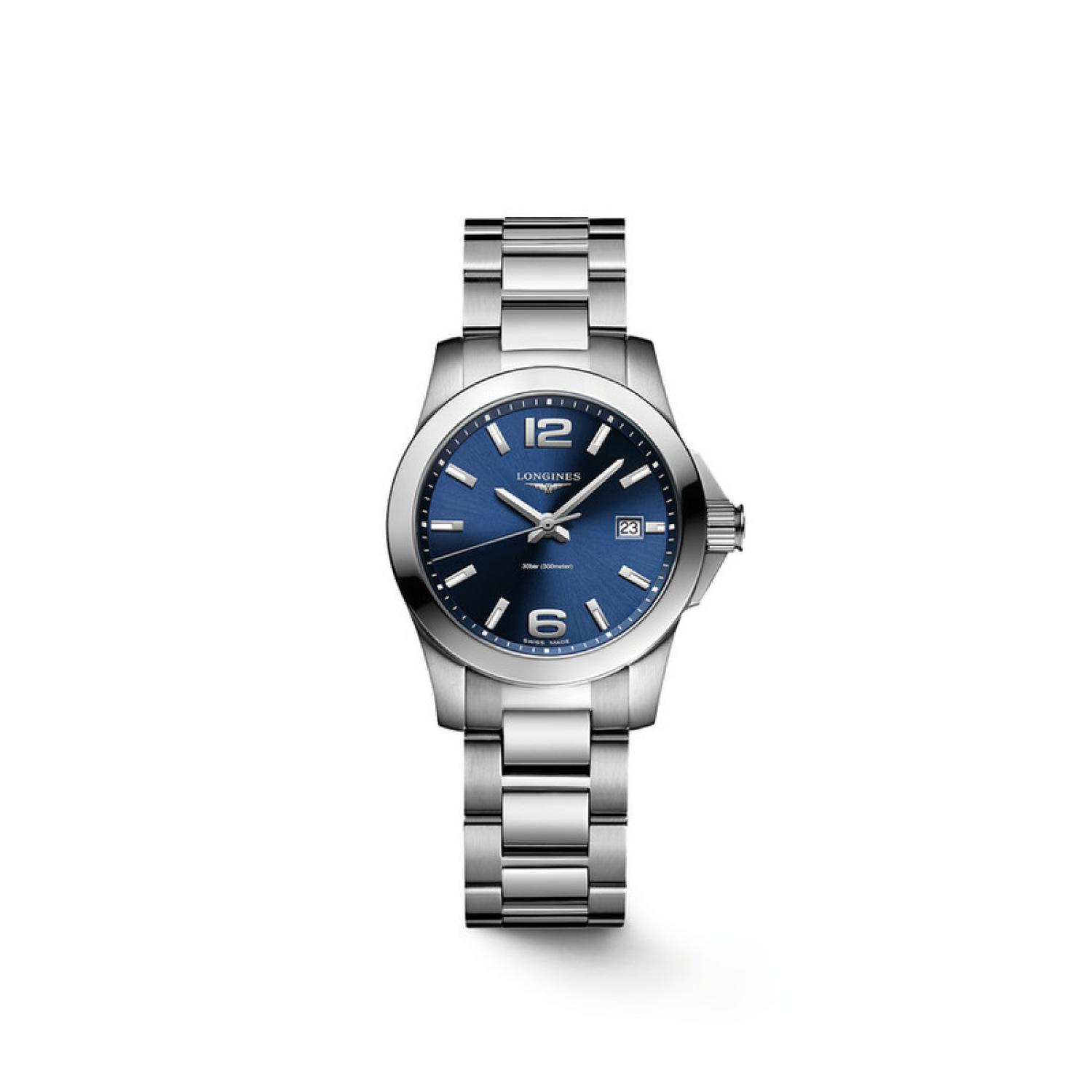 Longines Conquest is the quintessential expression of the brand’s sporting elegance. Special attention went into the aesthetics of the bezel, the cabochon crown and the links. A subtle blend of performance and elegance, the Longines Conquest includes technical features that meet the requirements of the most demanding sportsmen and women. Both sober and sophisticated, these models are guaranteed to catch the eye at the most fashionable soirées as well as in the stands of prestigious horse races.