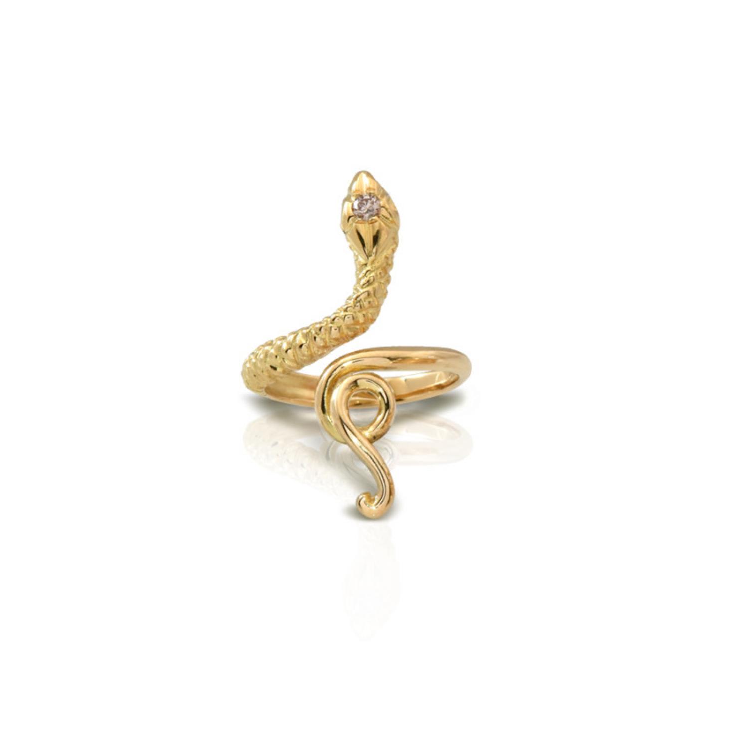 Textured pattern snake ring in 18k yellow gold with diamond
