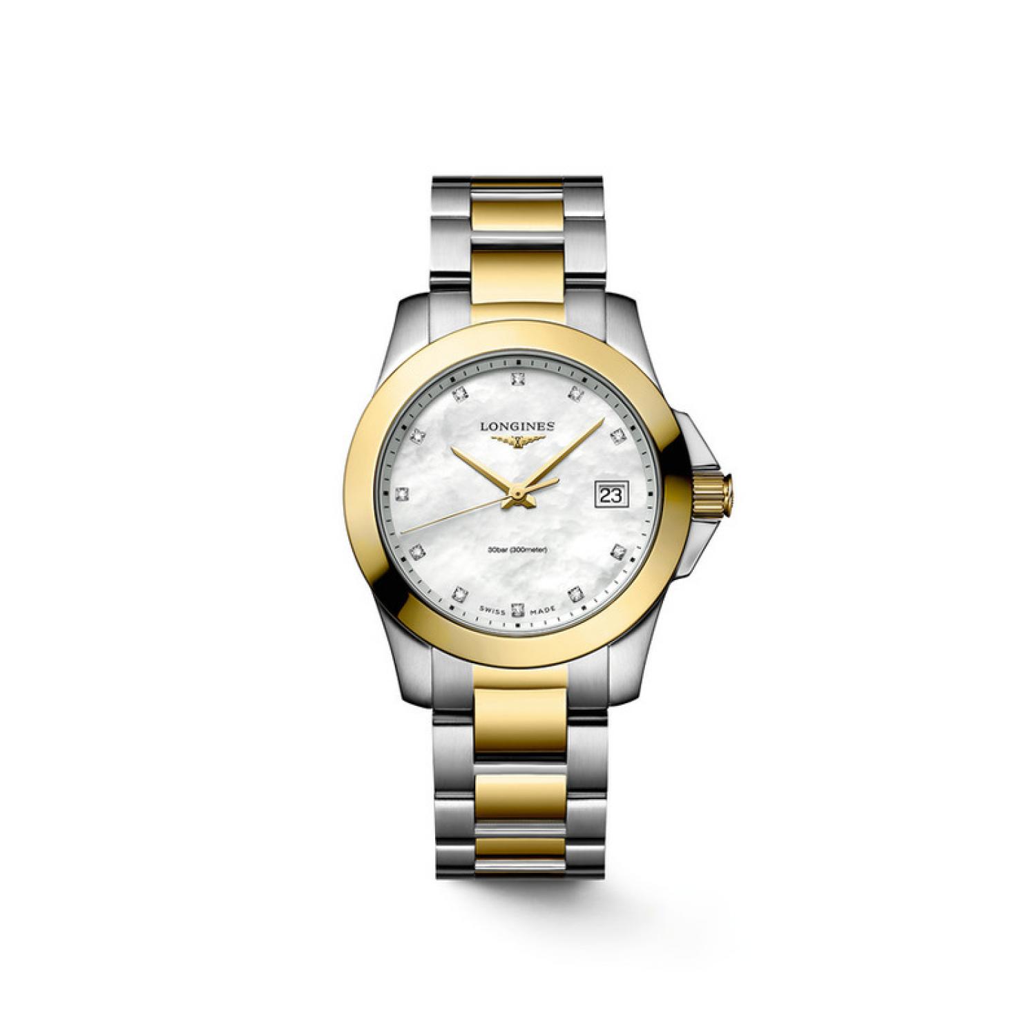 Longines Conquest is the quintessential expression of the brand’s sporting elegance. Special attention went into the aesthetics of the bezel, the cabochon crown and the links. A subtle blend of performance and elegance, the Longines Conquest includes technical features that meet the requirements of the most demanding sportsmen and women. Both sober and sophisticated, these models are guaranteed to catch the eye at the most fashionable soirées as well as in the stands of prestigious horse races.