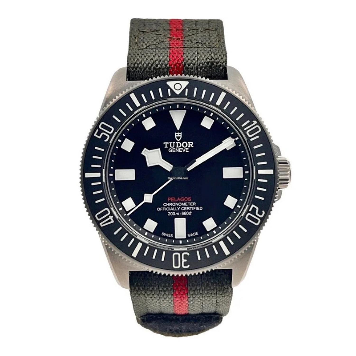 Titanium case, 42mm in diameter, 12.75mm thick, 52mm from lug to lug, satin-brushed finish, fixed strap bars, steel case backMovement