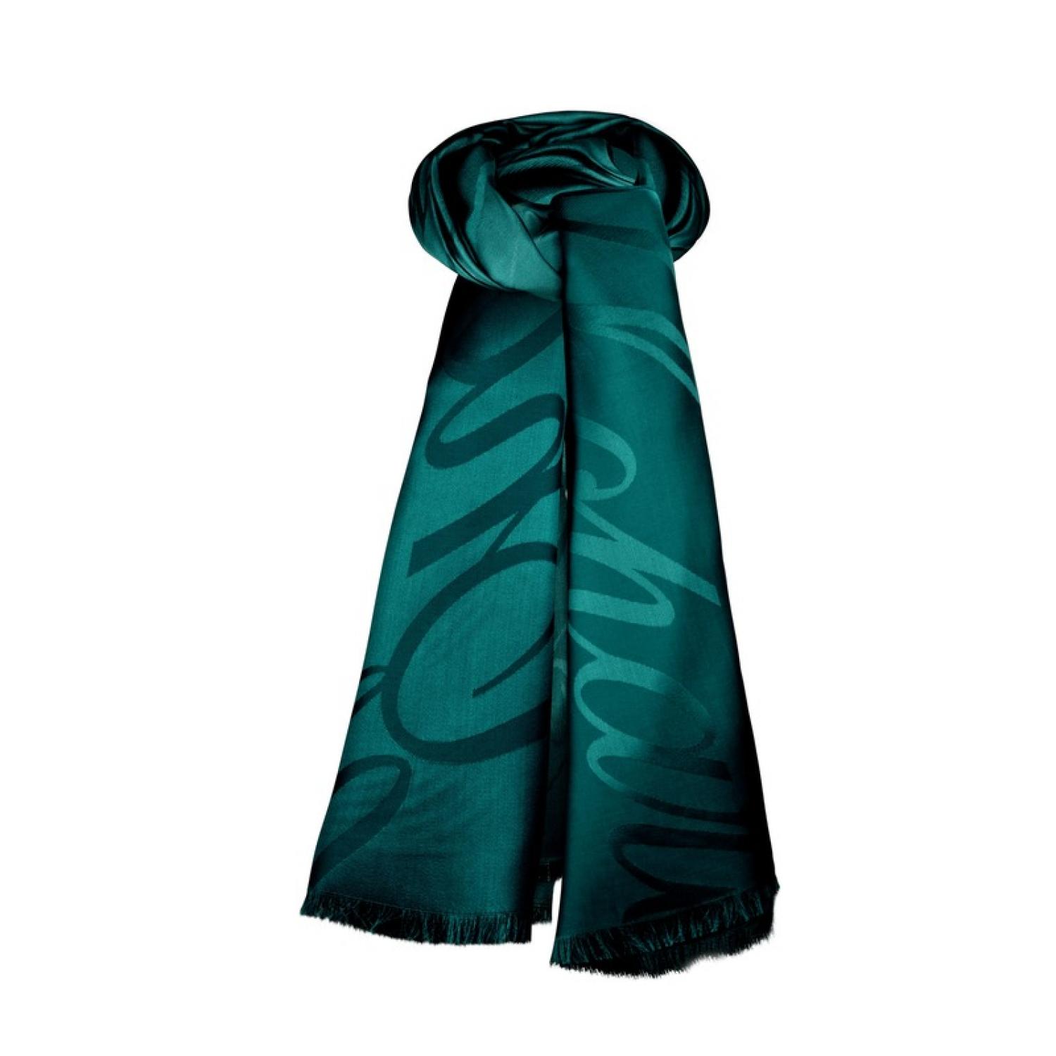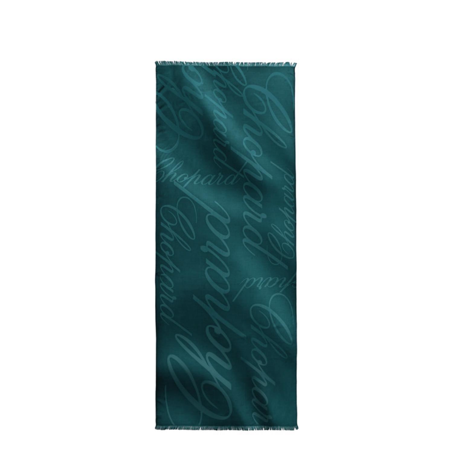 How can you resist the tender velvetiness of this green cashmere and silk stole? The harmonious calligraphy of the Chopard logo unfolds in all directions and in all sizes, as if to underline a delicious obsession, with the fine, uncluttered letters shining through thanks to subtle highlighting. A discreetly chic piece to don at the slightest chill.