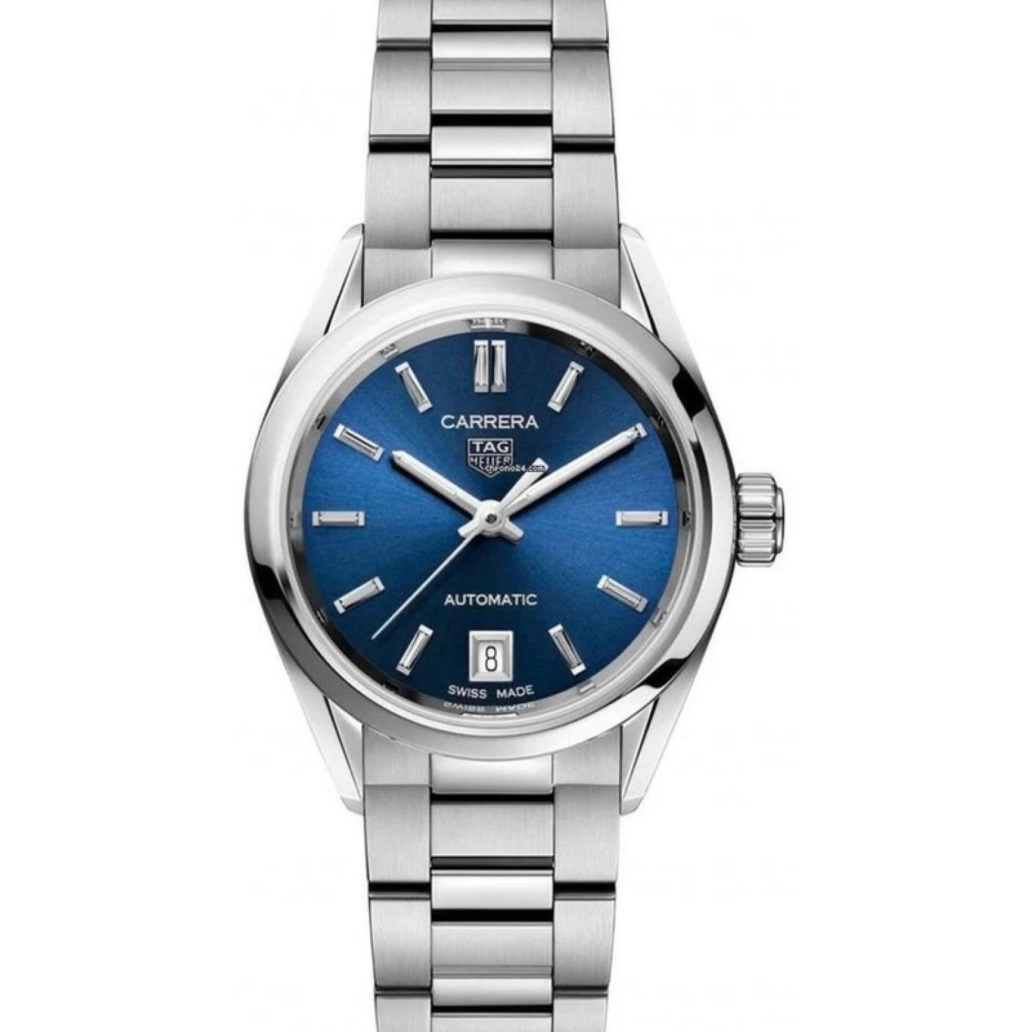 The TAG Heuer Carrera's dial is proudly, resolutely, blue. The sunray brushed finish adds an attitude of striking luxury to the signature design.