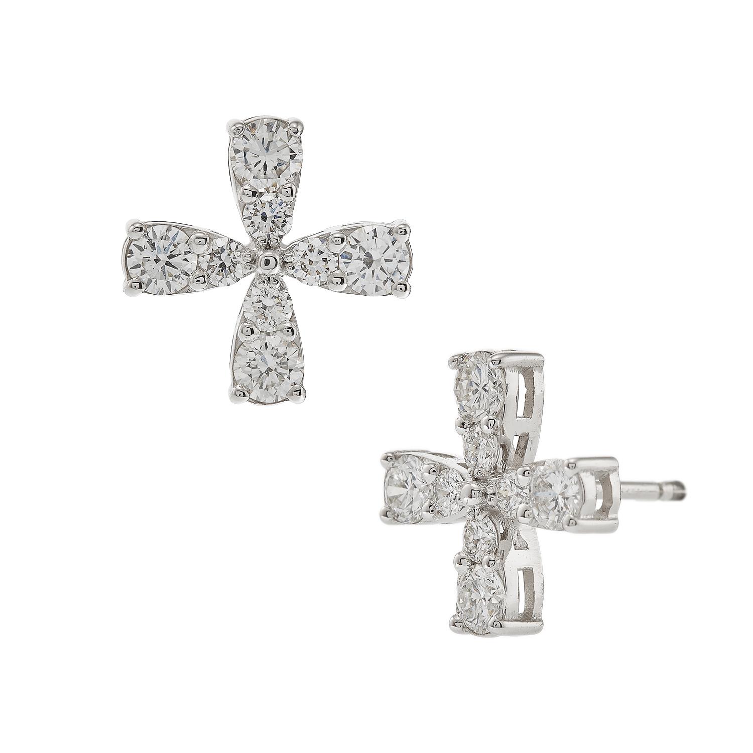 Stud flower earrings with diamonds.