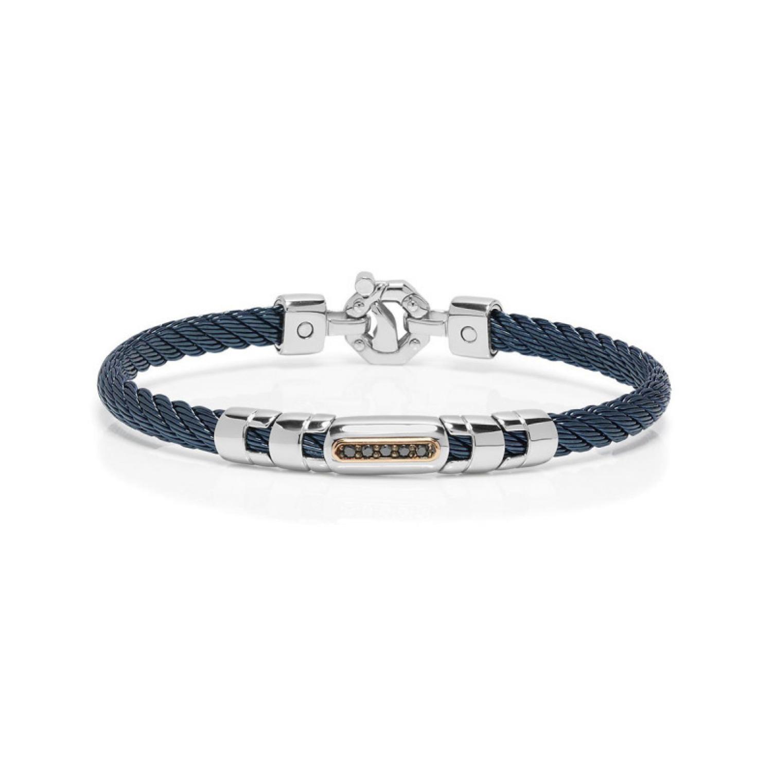 Men's bracelet in 750‰ Rose Gold, 925‰ Silver, 316 Stainless Steel with blue PVD treatment.