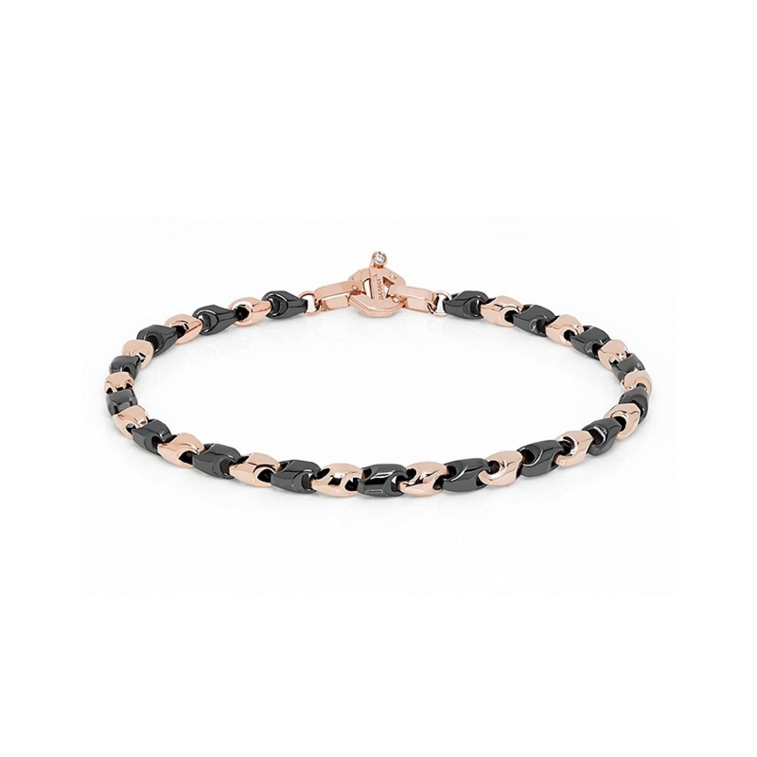 Men's bracelet made of 750‰ Rose Gold and high-strength black Ceramic. Gold octagonal clasp with P.Ct 2 white diamond.