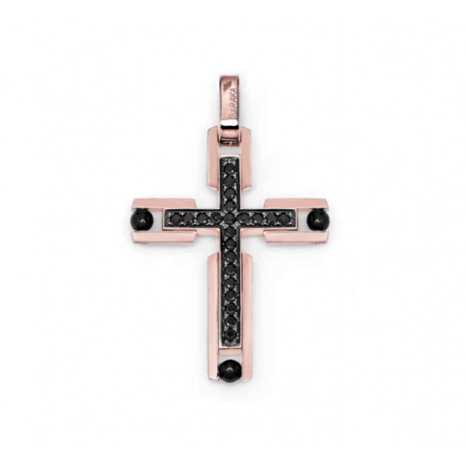 Cross Pendant in 18k rose gold and black diamonds