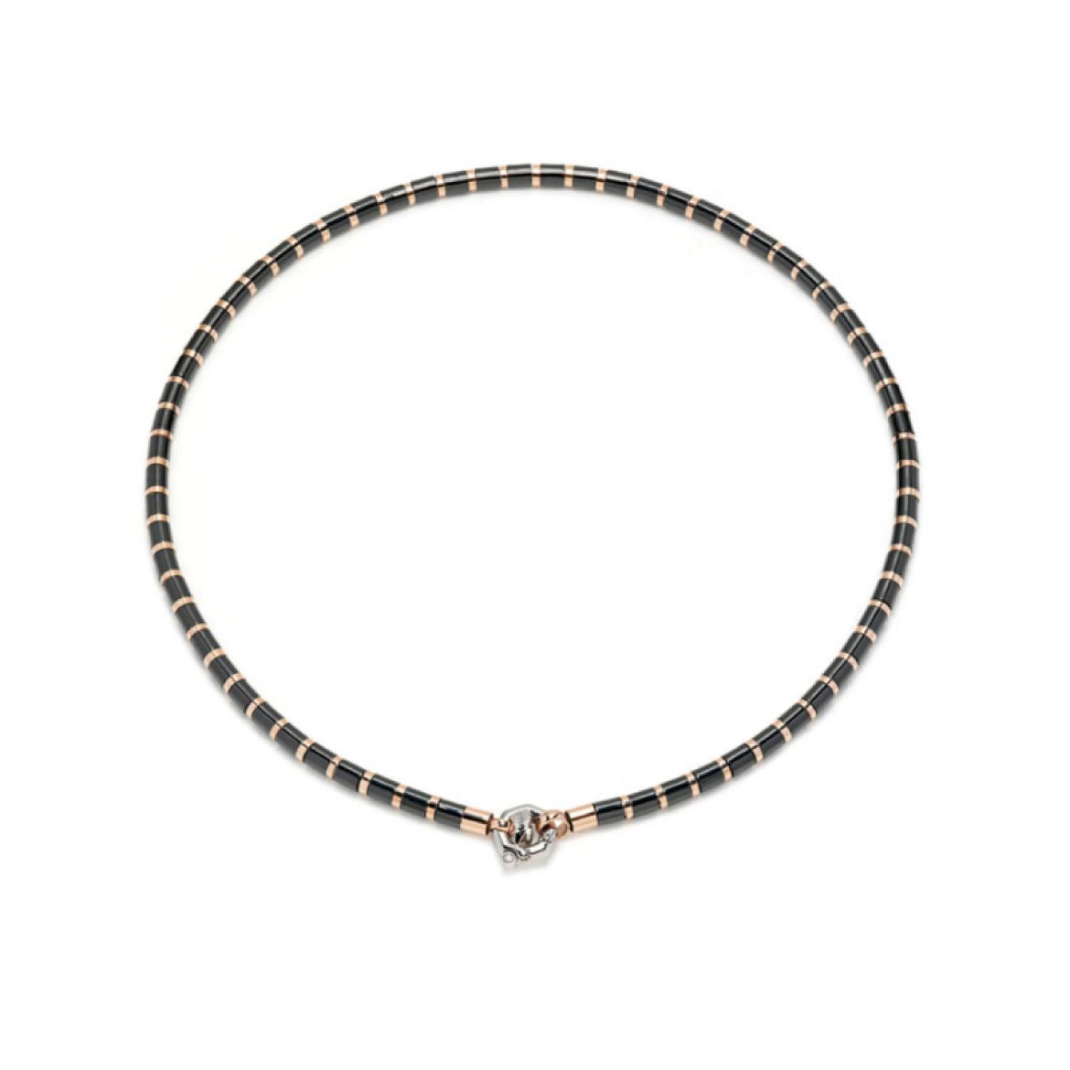 Snake Necklace in 18k Rose and White gold, and ceramic with a single diamond