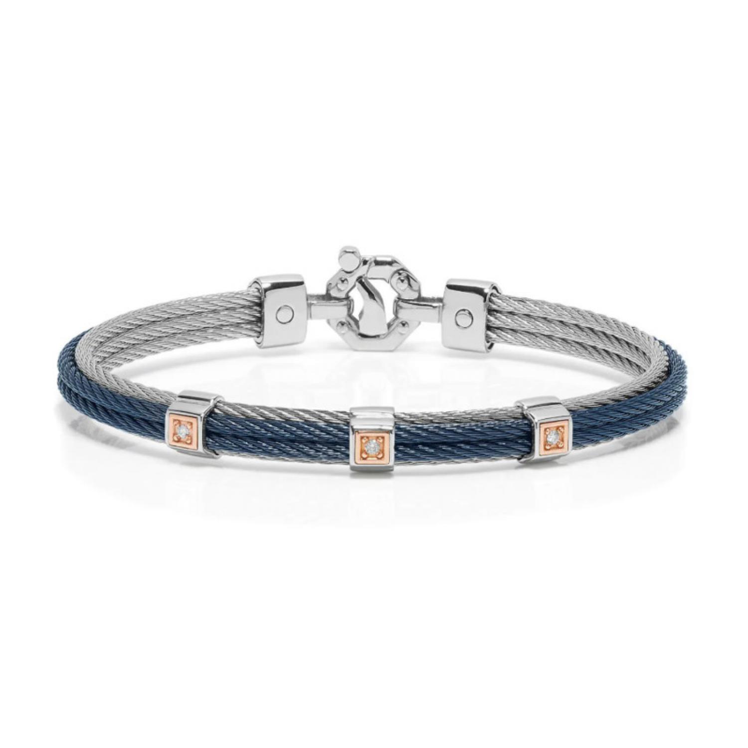 316L Bracelet in 18k Rose and White Gold, Stainless and PV Steel with four Diamonds