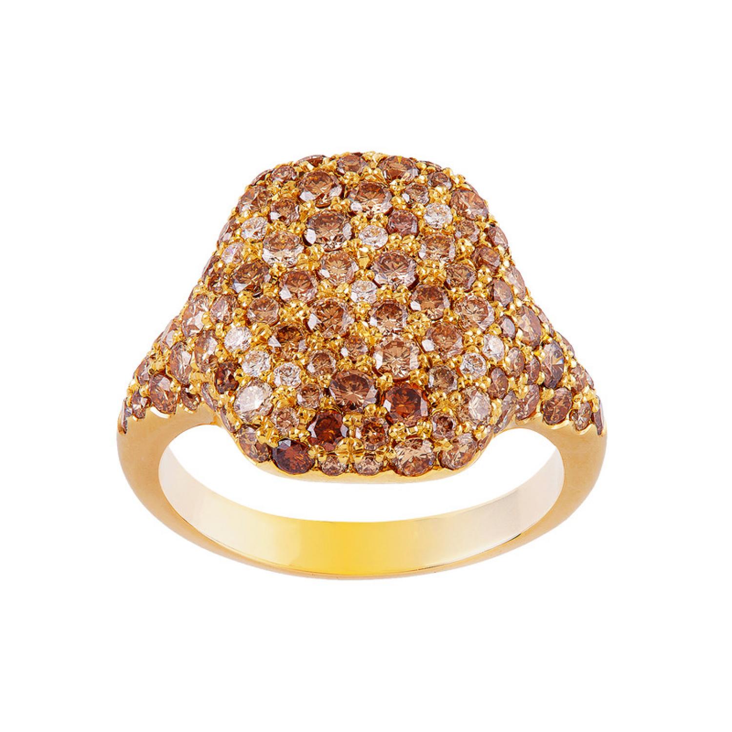 Brown Diamonds Ring with twenty-five 2.13ct brilliant-cut brown diamonds and five 0.09ct diamonds in 8.19gr 18k yellow gold.