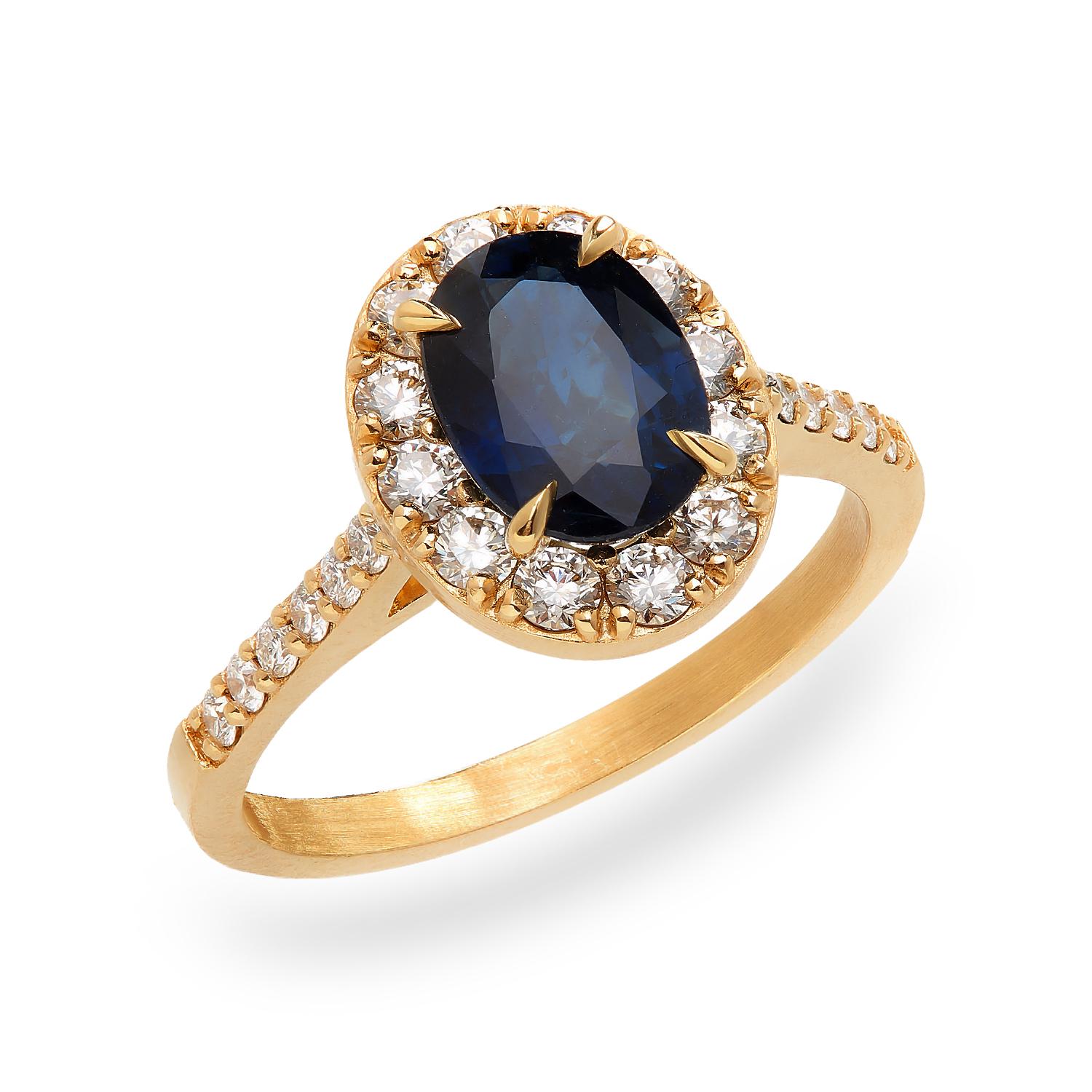 18K Yellow gold ring with 0,56ct brilliant diamonds and a 1,68ct sapphire