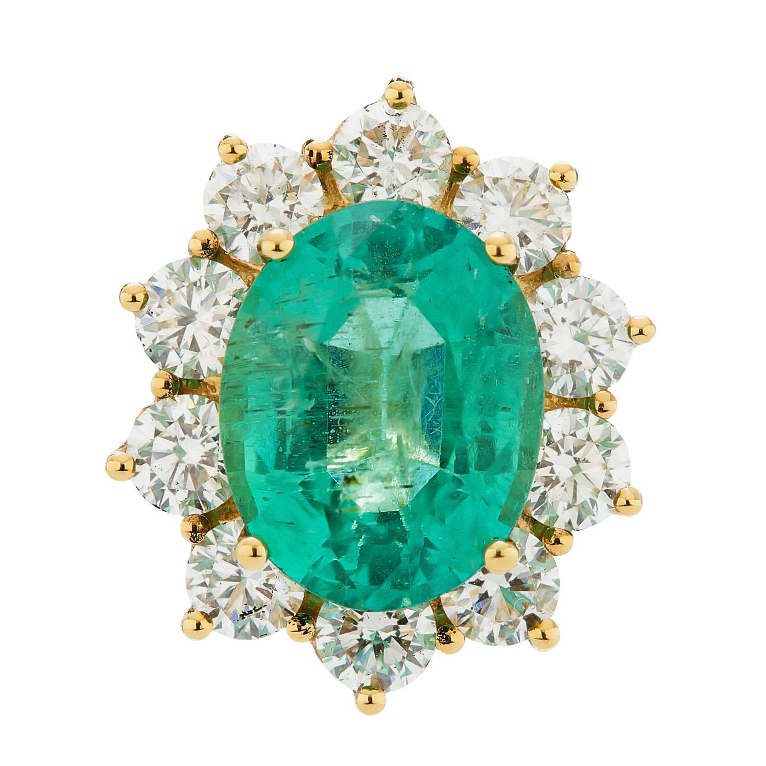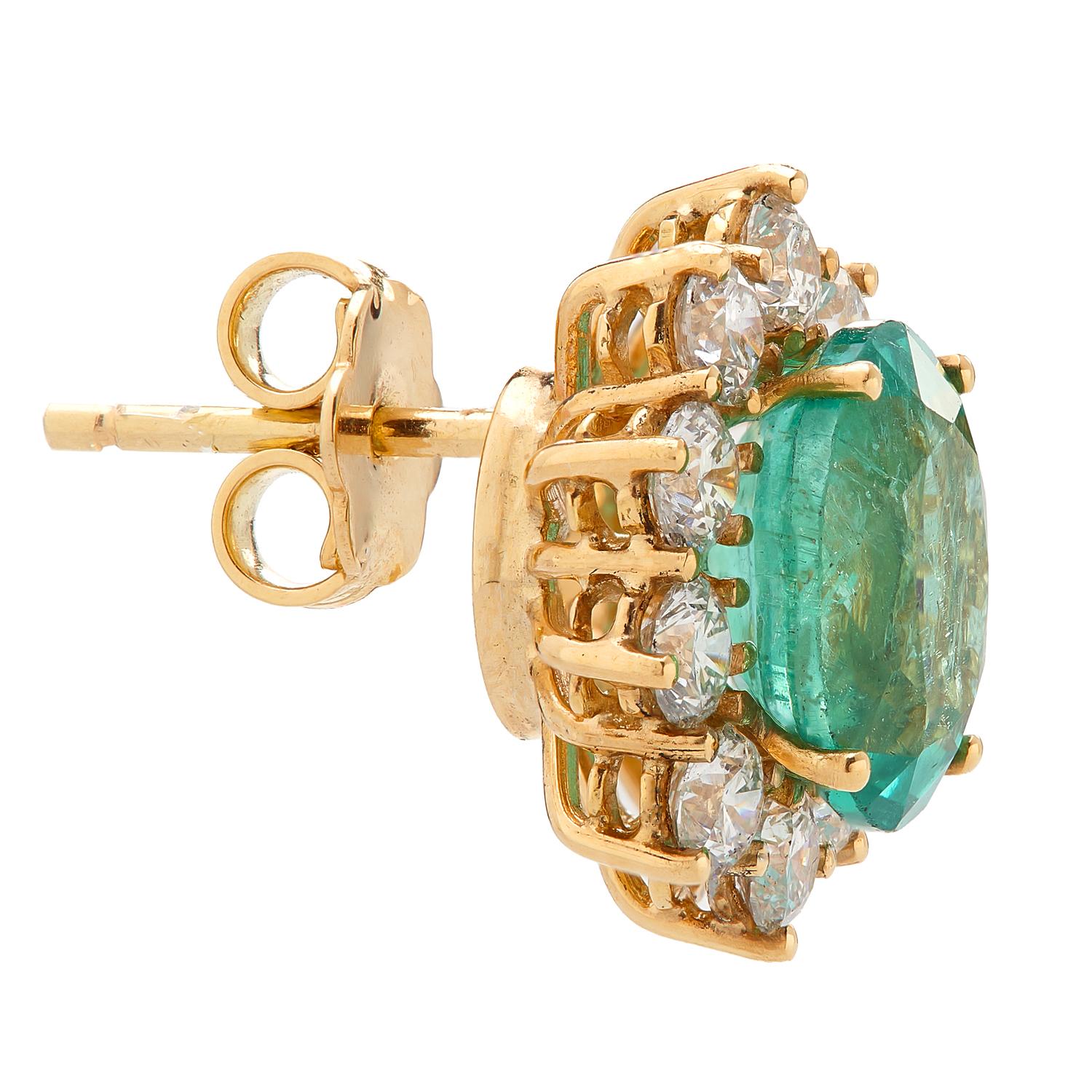18K Yellow gold earrings with 1,76ct brilliant diamonds and a 3,66ct emerald