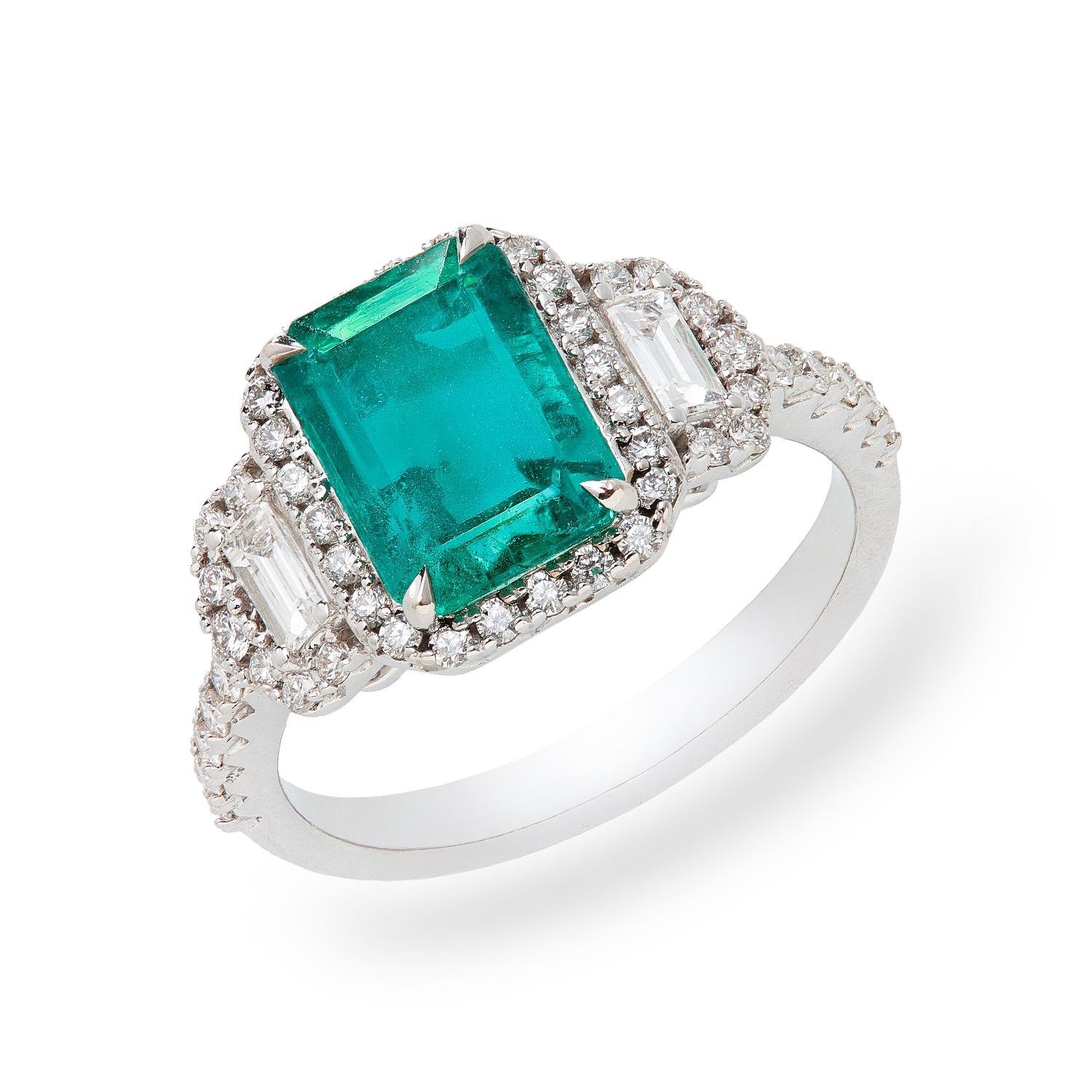 18K White gold ring with 0,62ct brilliant diamonds and a 1,91ct emerald