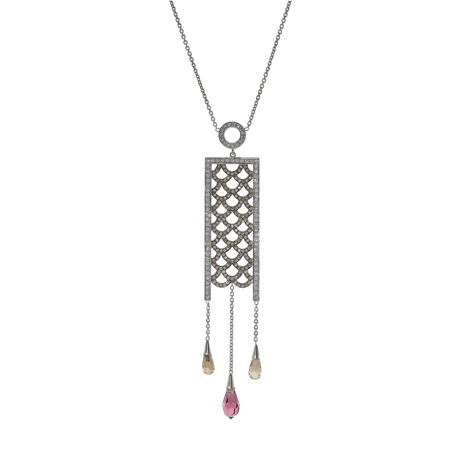 Art Deco necklace with white & brown diamonds and dangling tourmalines.